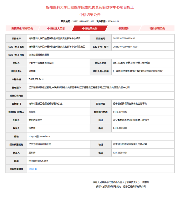 上一条:锦州医科大学2026年后勤服务中心生物质颗粒采购项目成交结果公告